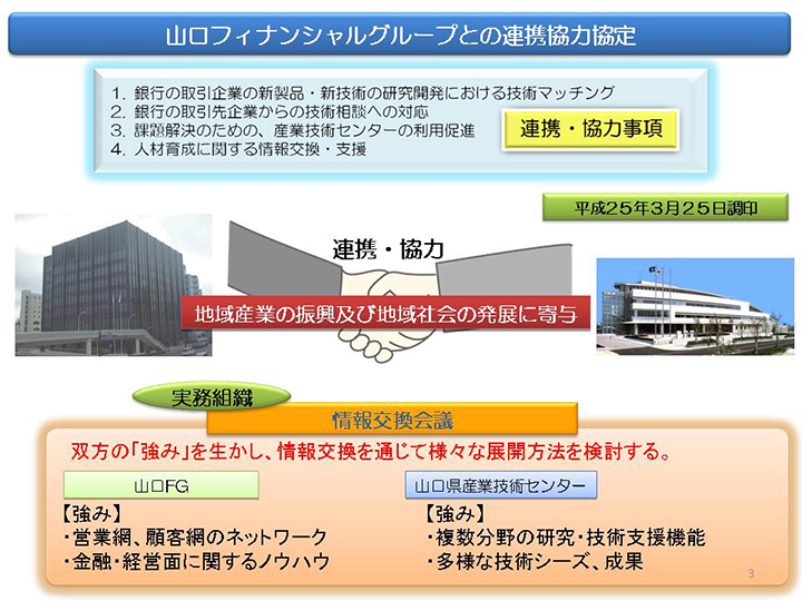 山口県産業技術センターは山口大学、やまぐち産業振興財団と、地域の産業振興及び人材育成に関する包括的連携・協力協定を締結しました。