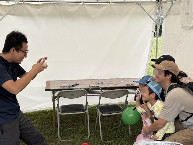 10月25日、26日に開催されたやまぐちJOBフェスタ(山口きらら博記念公園)に、「オリジナル缶バッジを作ろう!~熱で黒くなる感熱紙で科学実験~」を出展しました。
